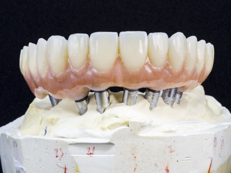 Durch die computergestützte Frästechnik sind wir in der Lage individuell gefräste Implantataufbauten aus Titan, Zirkon oder NEM herzustellen. Dadurch wird das Austrittsprofil der darauf befestigten künstlichen Zahnkrone positiv beeinflusst, darüber hinaus verhindern individuelle Abutments das Eindringen von Speiseresten in die Zahnfleischtasche. Auf Implantaten stellen wir hochwertigen herausnehmbaren Zahnersatz auf Primärkronen oder Stegkonstruktionen her.